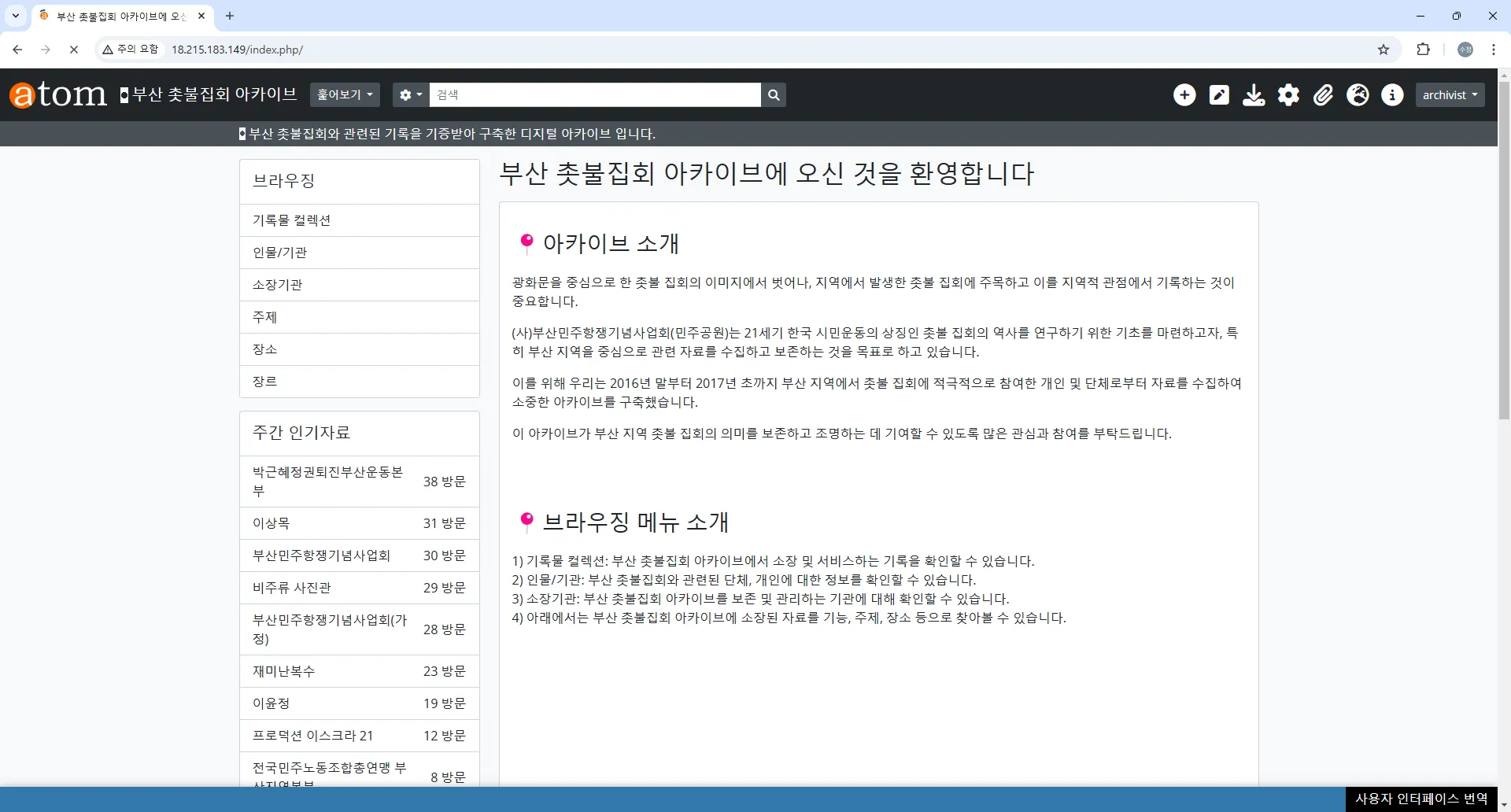 부산민주주의 아카이브 (촛불항쟁 관련)