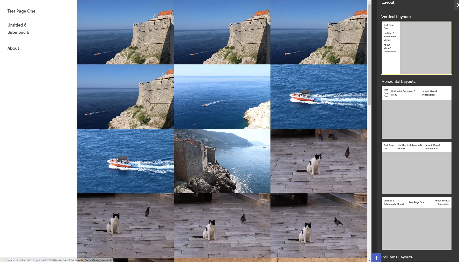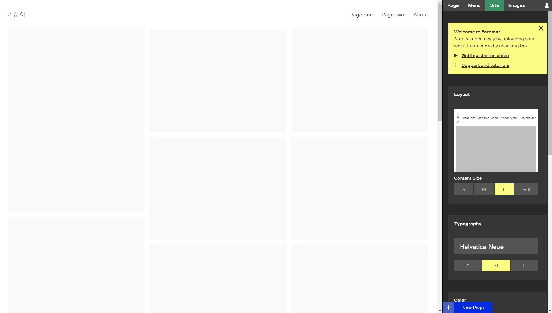 Menu에서 선택한 항목을 page 항목에서 수정하는 것이 Fotomat 페이지 구성의 주요 실행기능입니다.
