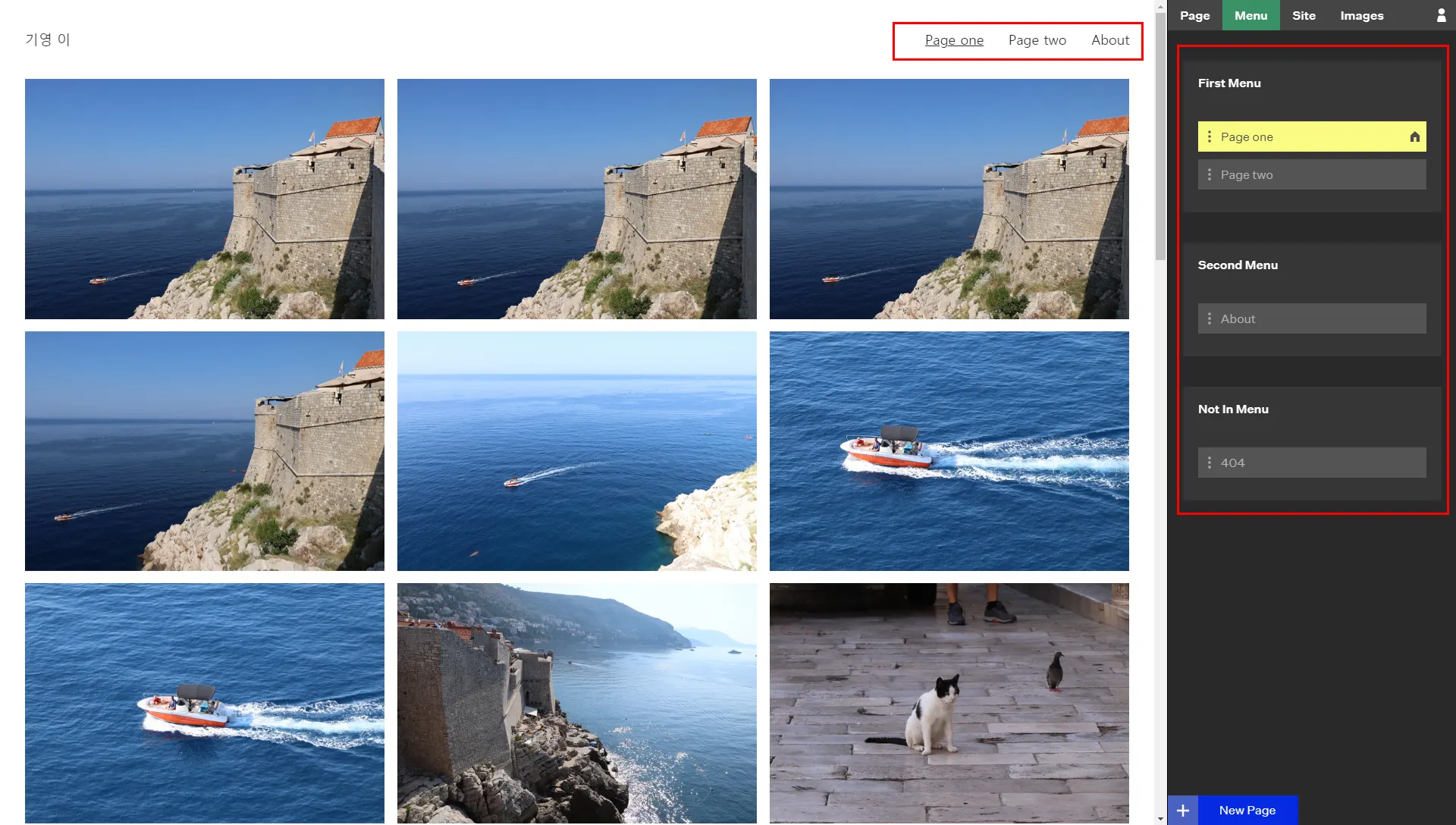 Not In Menu의 경우, 접근할 수 없는 페이지로 접근을 시도하였을 때 보여지는 화면을 나타내는 것으로, 해당 화면도 배경이미지를 넣는 등 수정할 수 있습니다.