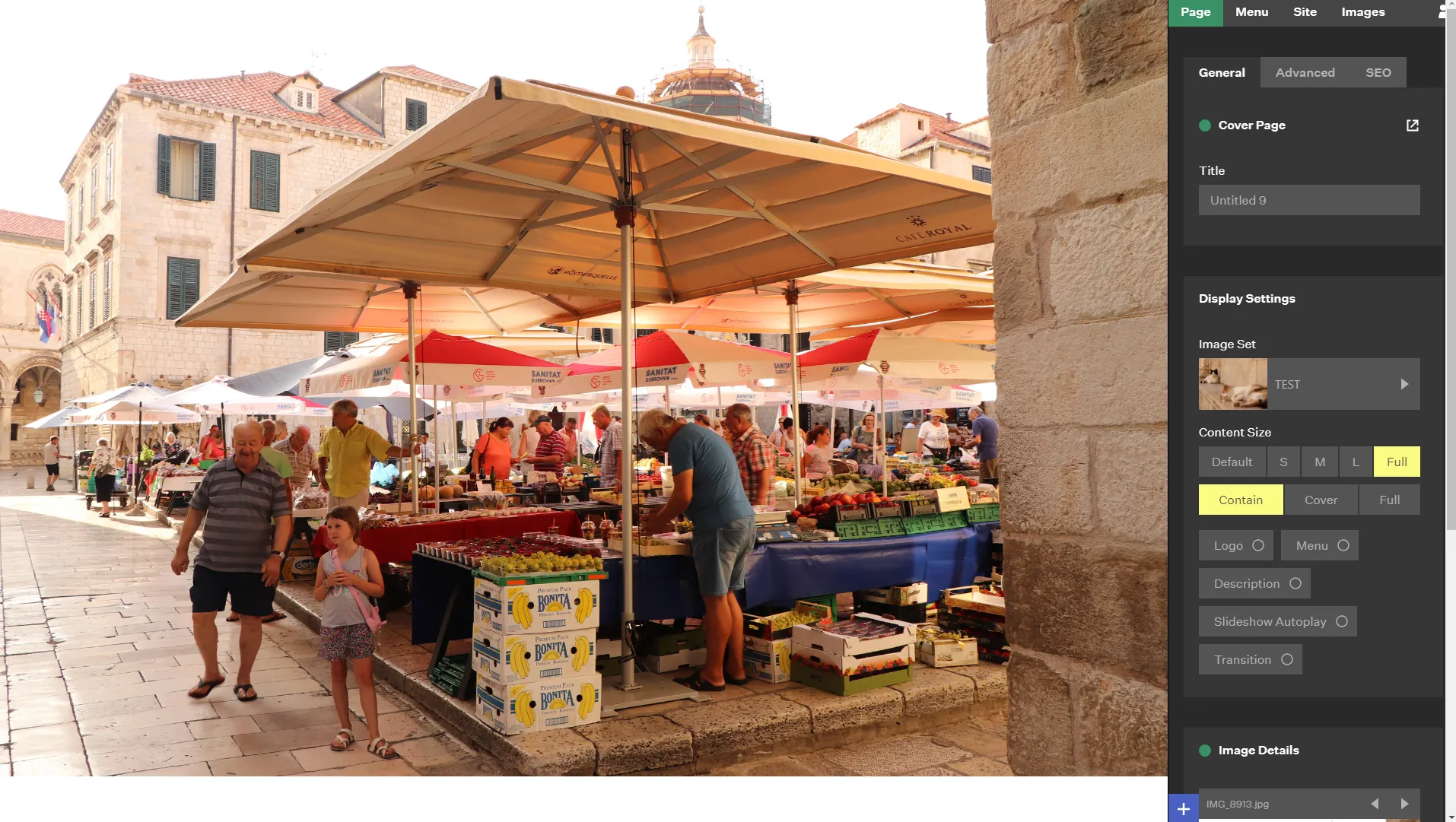 Cover 페이지를 생성한 후, Logo와 Menu의 체크박스를 해제하면 이미지만 노출되는 페이지를 구성할 수 있습니다.