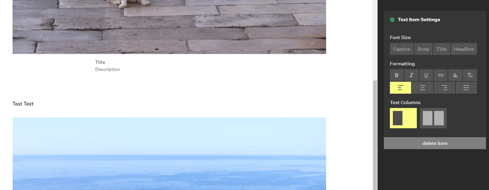 텍스트를 추가할 경우, 1단 혹은 2단으로 텍스트를 입력할 수 있습니다.