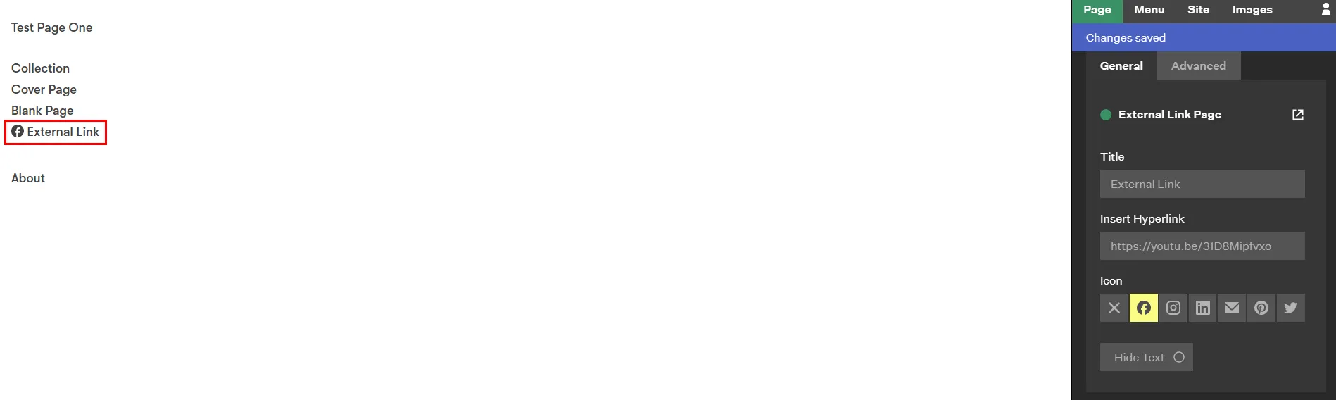 해당 링크는 메뉴에 추가되며, 클릭 시 하이퍼링크에 입력된 페이지로 바로 연결됩니다.