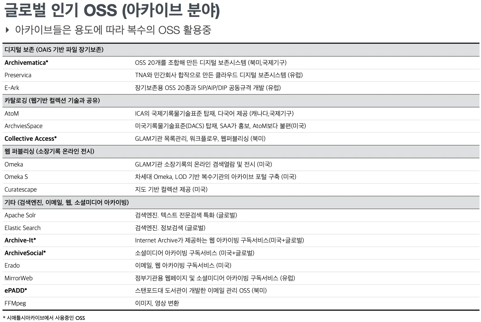 아카이브시스템은 상이할지라도 아카이브 서비스 페이지 구성은 유사