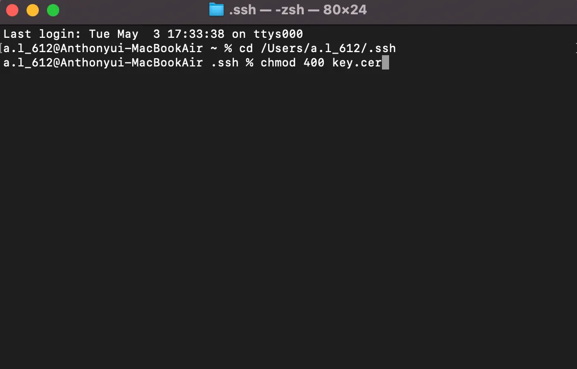 chmod 400 “키 파일명”.cer(혹은 pem)
