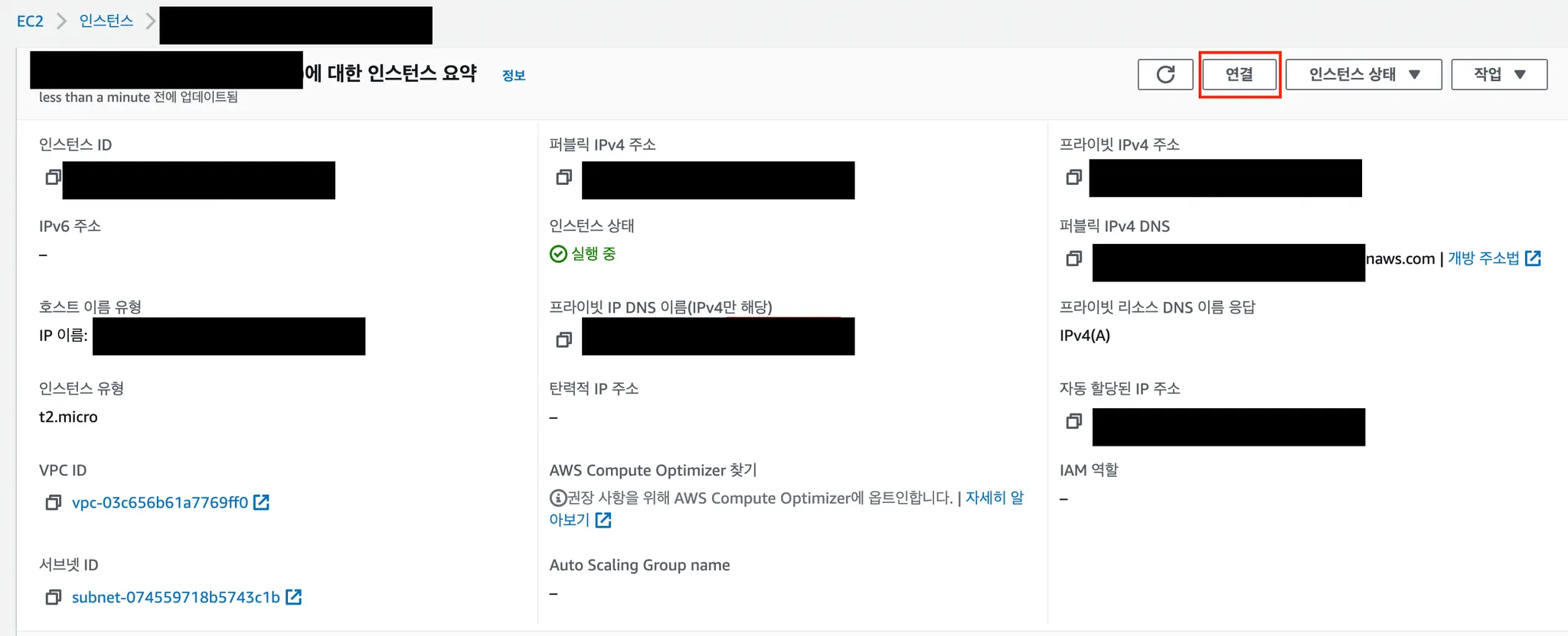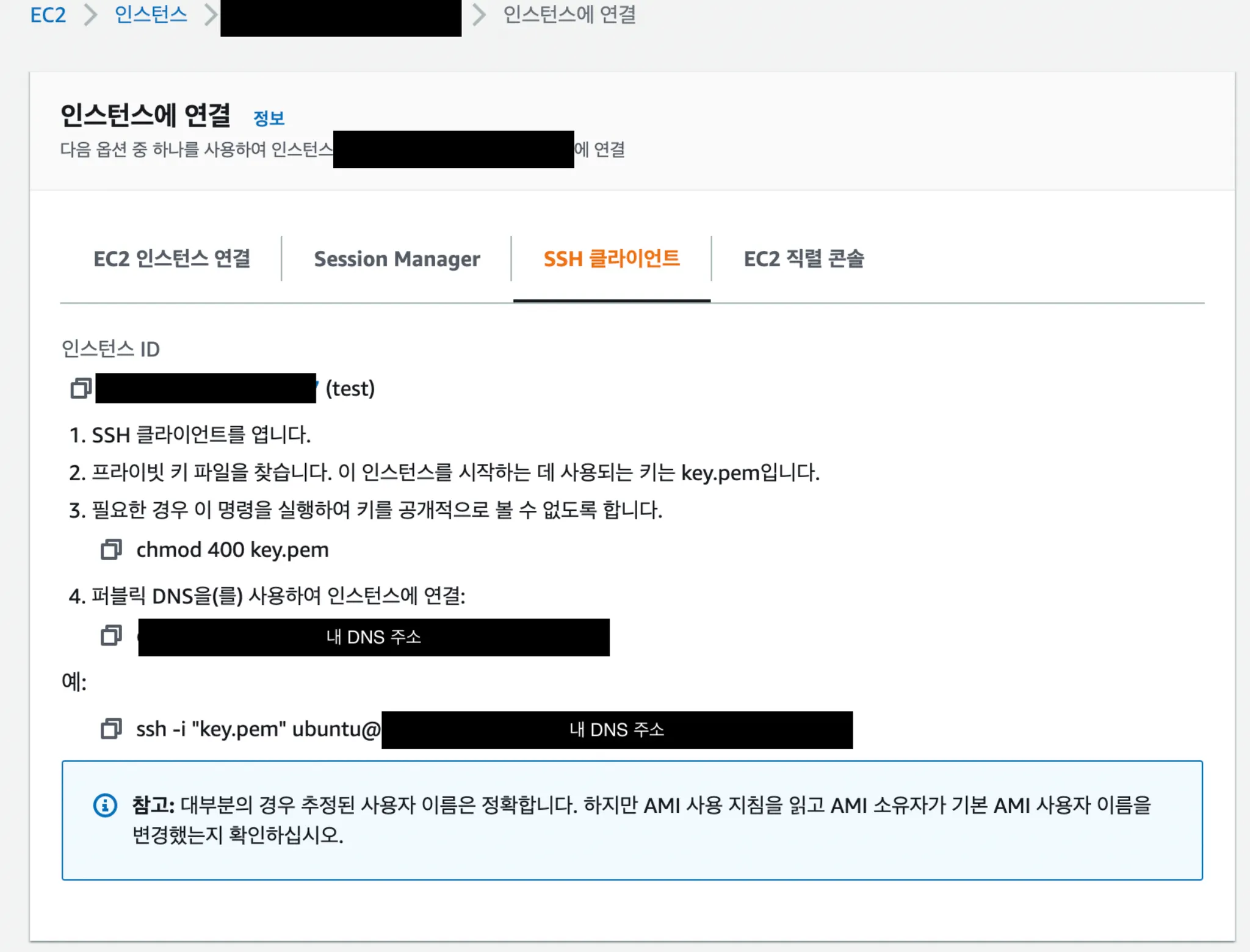 인스턴스 연결 정보 확인