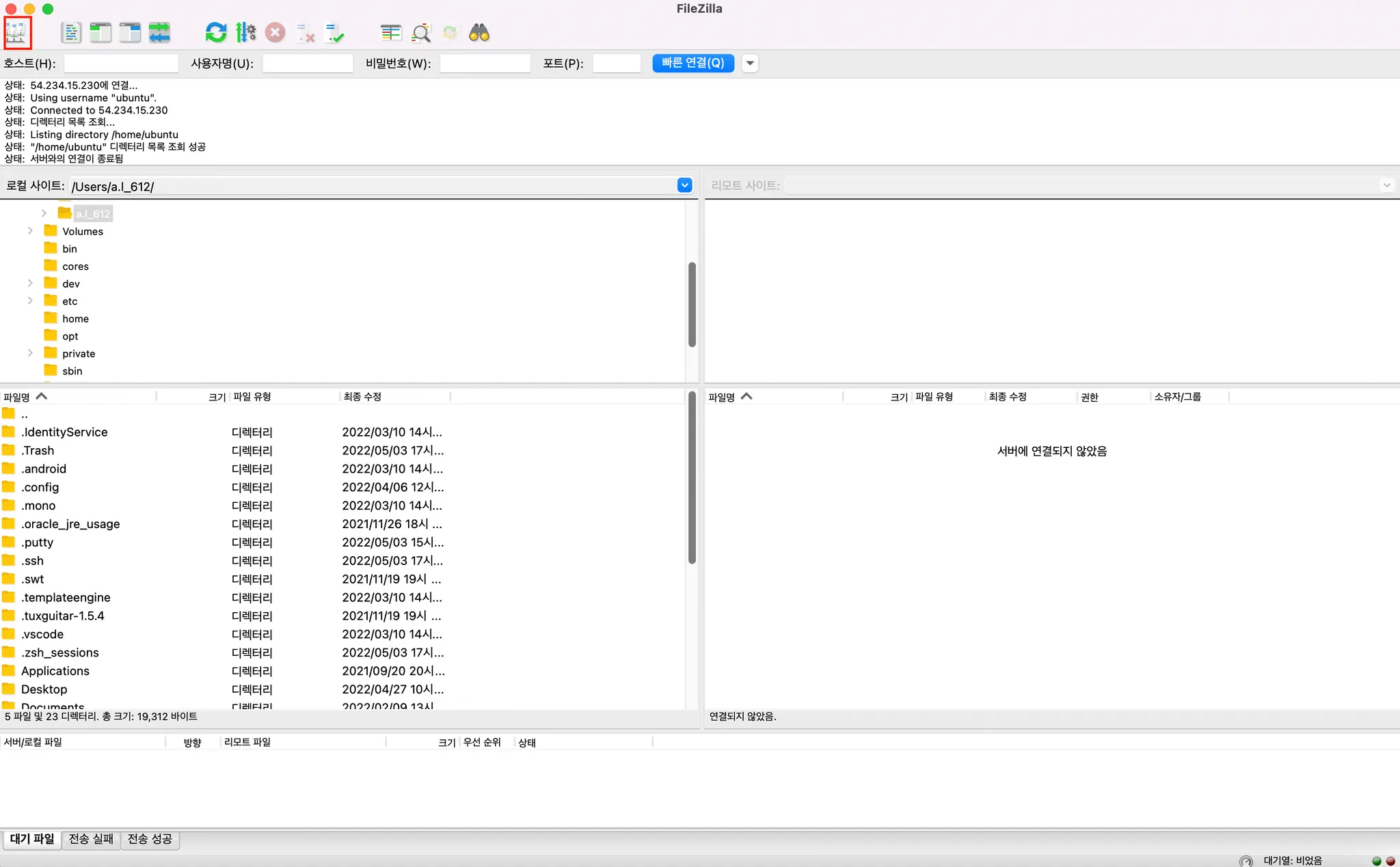 원격으로 우분투 서버에 접속하기(터미널, FileZilla 이용)